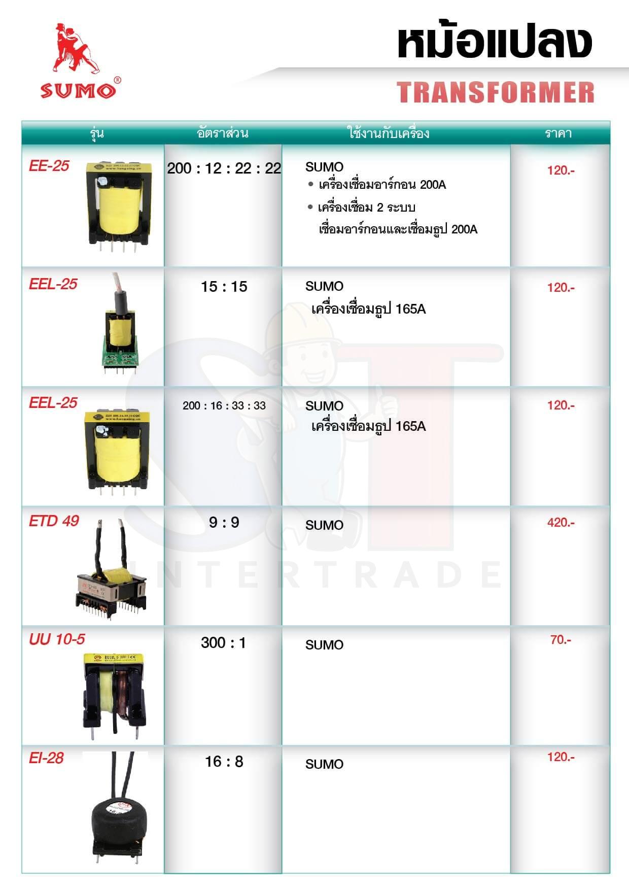 อัตราส่วนจำนวนรอบจะเป็นตัวบอกว่า หม้อแปลงนี้ใช้กับเครื่องเชื่อมรุ่นไหนการเลือกหม้อแปลงดูจากอัตราส่วนจำนวนรอบของลดขวด (Turn Ratio)