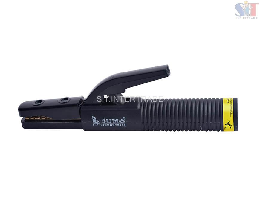 - SUMO INDUSTRIAL Electrode Holder made from the special brass, forging forming process so it’s strength and durability, surface texture meets quality and copper coated having high electricao conductive properties, withstand to heat and inflexible. The metal part is of forging brass copper coated, which has good conductivity, and the handle is of fiber-glass materials, which has better heat-resistance (400°C)