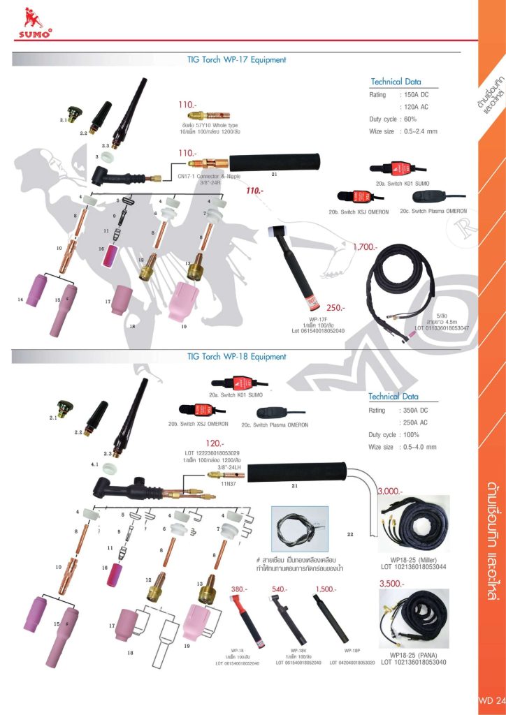 ด้ามเชื่อม WP-18V มีวาล์วที่สามารถปรับความแรงของแก๊สที่เชื่อมได้ หัวเชื่อมไม่สามารถปรับได้ตามความต้องการ สามารถระบายความร้อนด้วยน้ำ