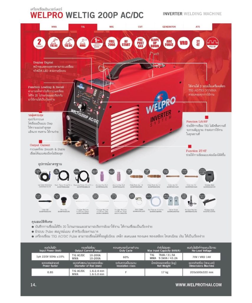 WELPRO – WELTIG 200P AC/DC เครื่องเชื่อมอินเวอร์เตอร์ เวลโปร รุ่น เวลทิก 200P AC/DC / ( เชื่อมทิก , เชื่อมอาร์กอน )