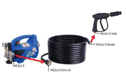 สายฉีดน้ำแรงดันสูง 5 เมตร แกน 14mm (M14x1.5 M22x1.5)