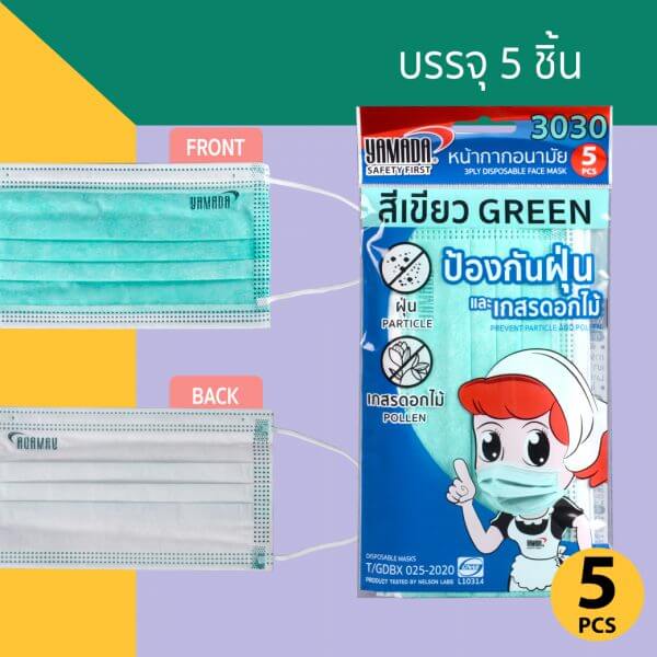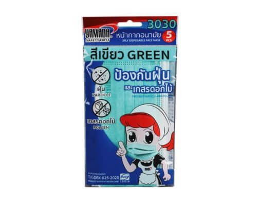 หน้ากากอนามัยสีเขียว รุ่น 3030 (5ชิ้น/แพ็ค) YAMADA