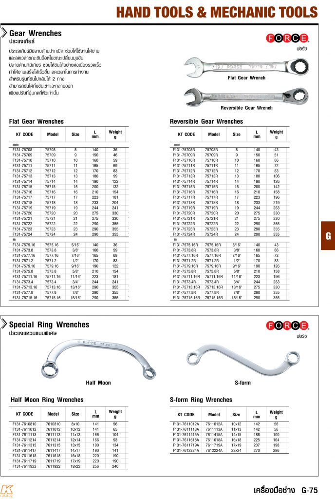 • ประแจเกียร์มีปลายด้านปากเปิด ช่วยให้ใช้งานได้ง่าย
