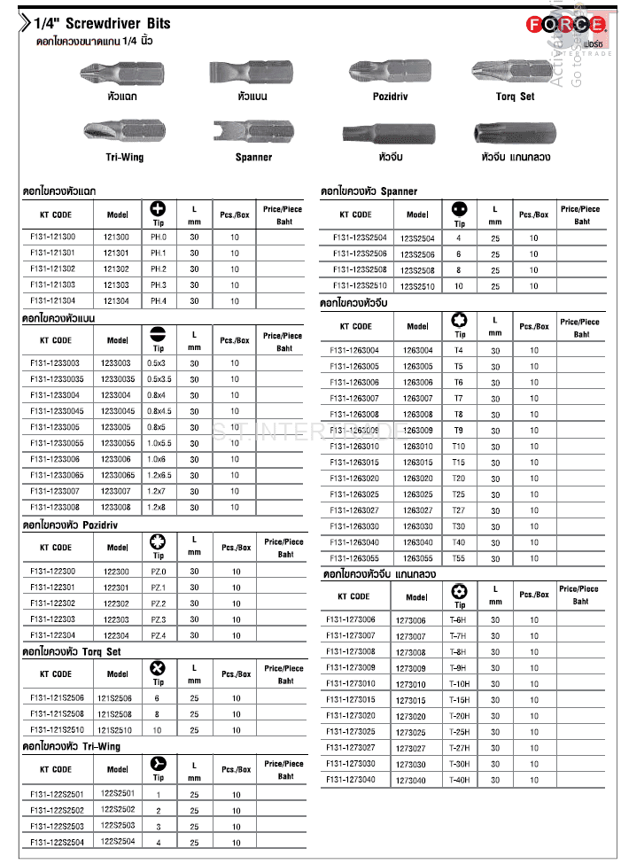 ดอกไขควง 1/4″ หัวแบน เบอร์ 1/4″ รหัสสินค้า : F131-123301.4