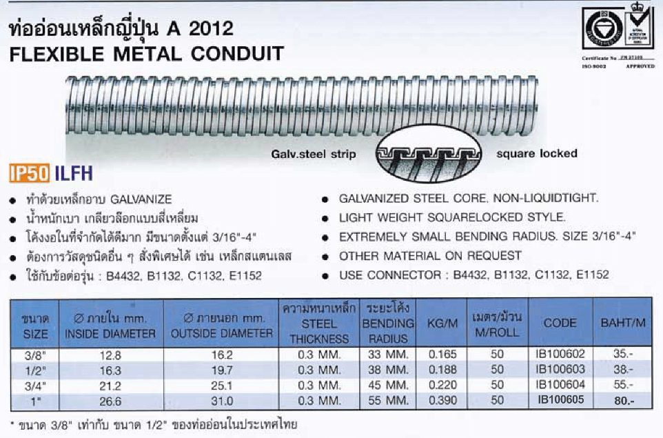 - โค้งงอในที่จำกัดได้ดีมาก มีขนาดตั้งแต่ 3/8″-1″