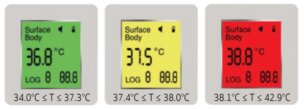 - หน้าจอมีพื้นหลัง 3 สี จะเปลี่ยนไปตามอุณหภูมิของร่างกาย