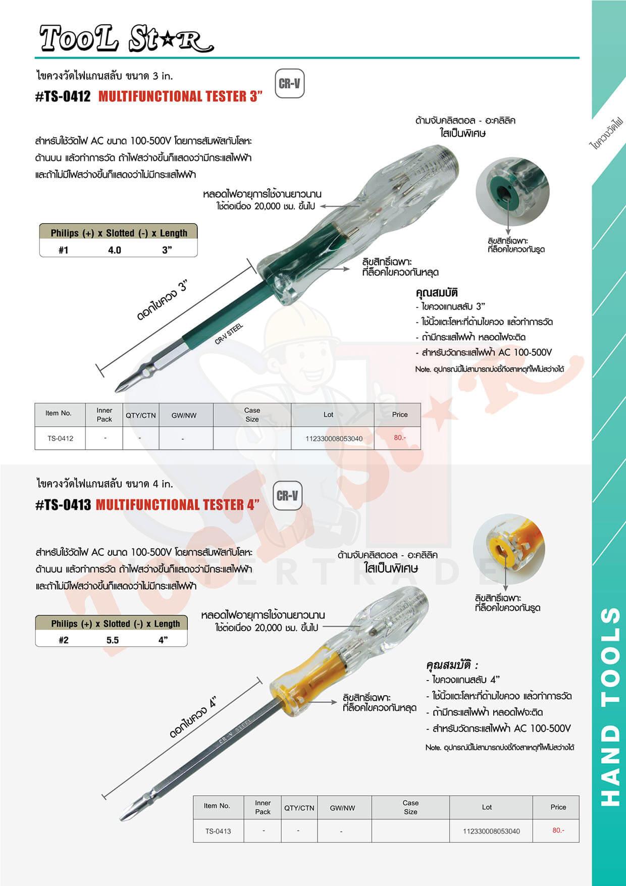 ไขควงวัดไฟแกนสลับยาว 4 นิ้ว Mod.TS-0413 Tool Star