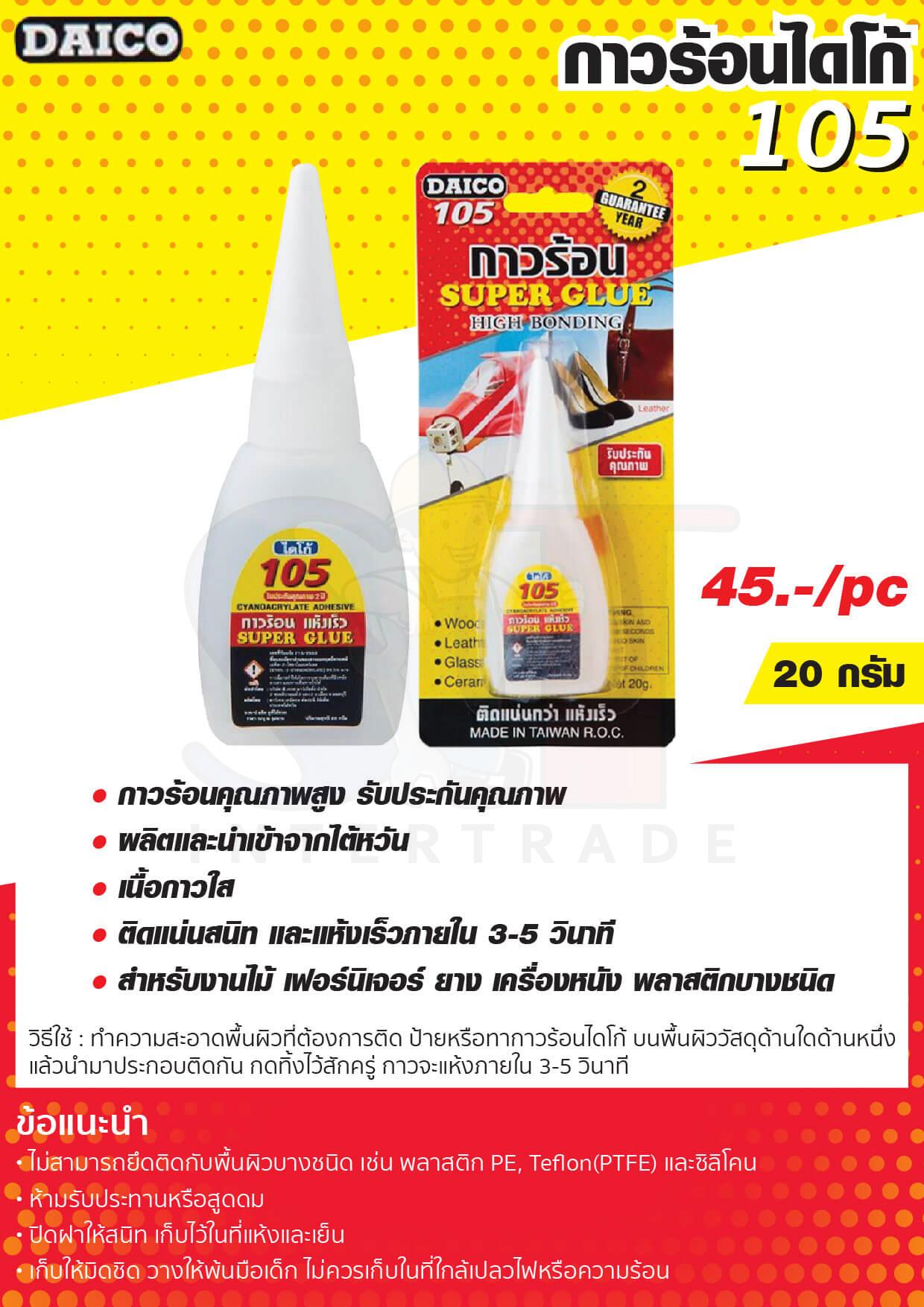 - กาวร้อน ติดแน่นสนิท และแห้งเร็วภายใน 3-5 วินาที