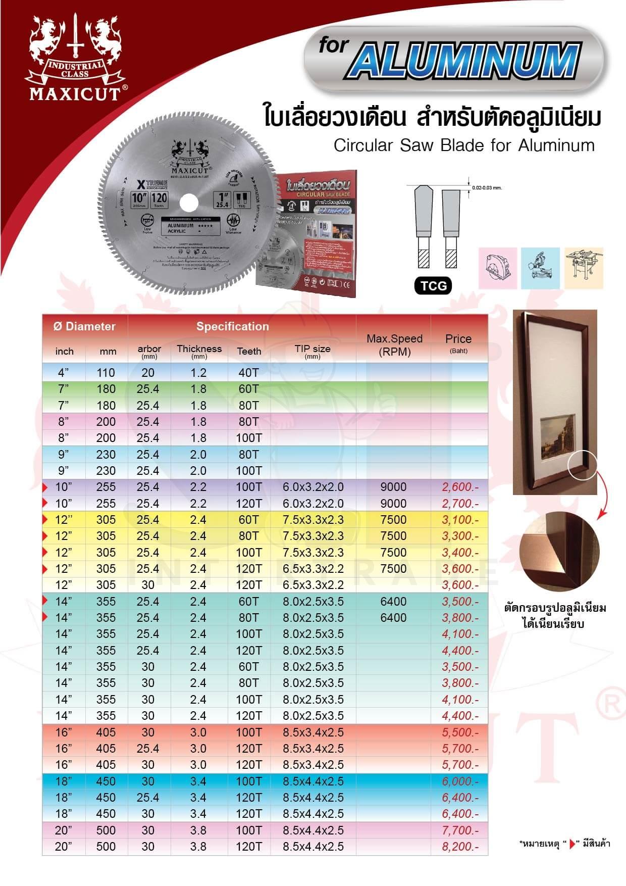 - ใบเลื่อยวงเดือนสำหรับตัดอลูมิเนียม