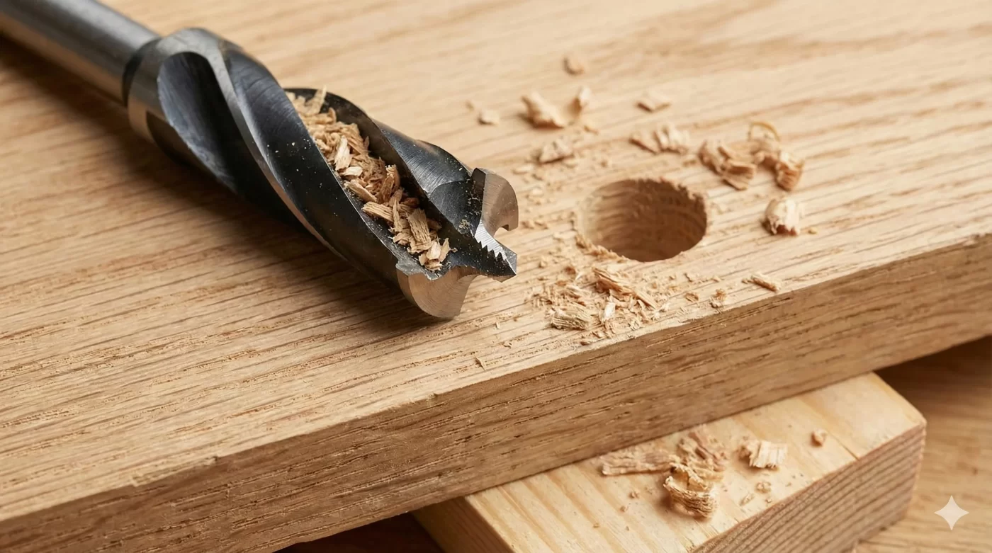 ดอกสว่านเจาะไม้จะมี ปลายแหลมพิเศษ เพื่อช่วยนำศูนย์ และมี คมตัดด้านข้าง สำหรับเฉือนเส้นใยไม้ บางรุ่นมีเดือยตรงกลางช่วยให้เจาะได้ตรง ไม่ลื่นไถล และออกแบบร่องให้ คายเศษไม้ได้ดี ลดการอุดตันขณะเจาะ