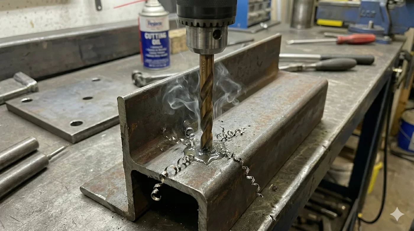 - ไม่ควรกดแรงเกินไป ให้ดอกสว่านค่อย ๆ กัดเนื้อเหล็ก จะช่วยให้รูเจาะเรียบและลดโอกาสดอกหัก