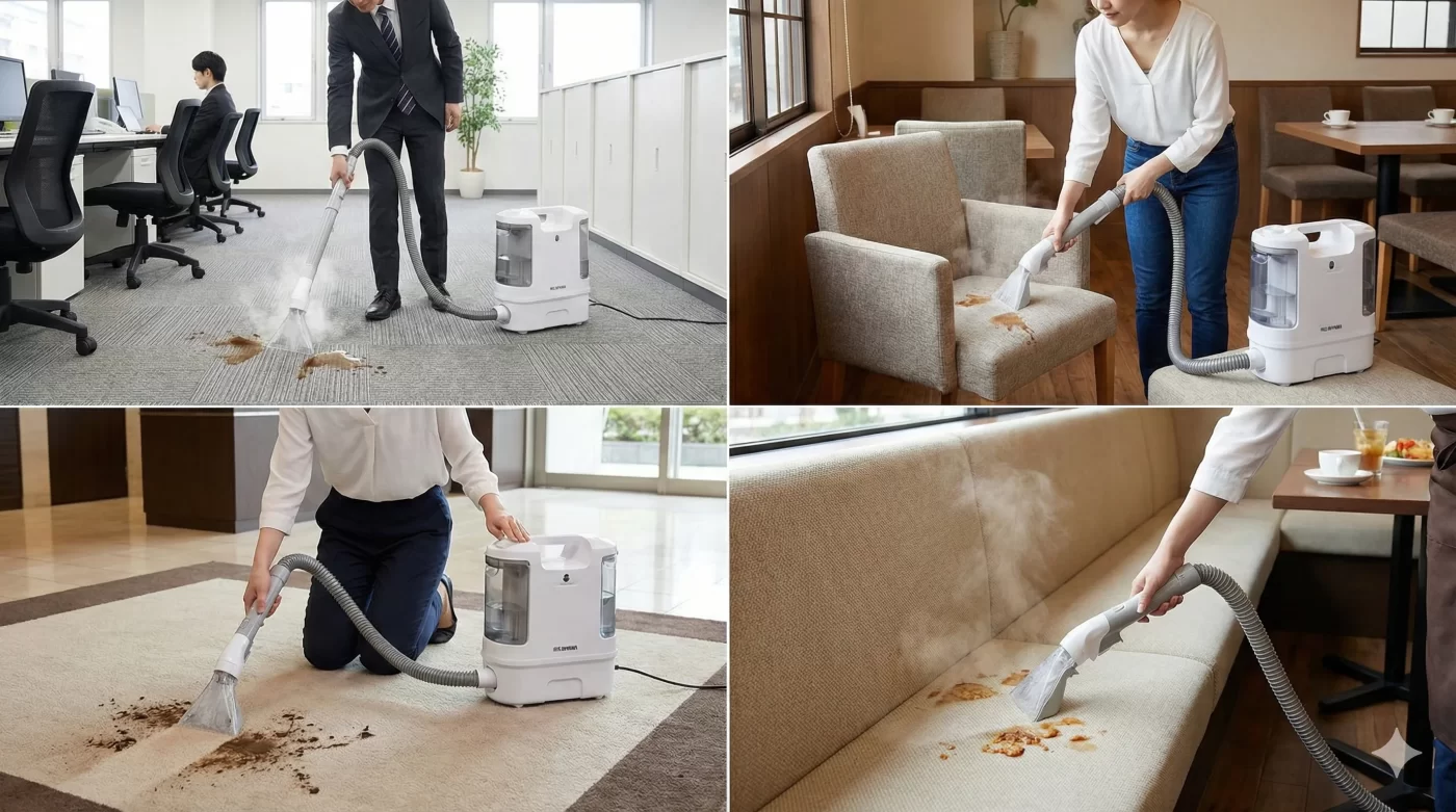 IRIS OHYAMA รุ่น RNS-P10 ไม่ได้จำกัดการใช้งานเฉพาะในบ้านเท่านั้น แต่ยังเหมาะสำหรับพื้นที่ใช้งานหลากหลายประเภท เช่น สำนักงาน ร้านอาหาร ร้านกาแฟ โรงแรม หรือพื้นที่ที่มีการใช้งานซ้ำบ่อยและเกิดคราบสกปรกง่าย เครื่องสามารถช่วยจัดการคราบอาหาร คราบเครื่องดื่ม คราบฝุ่นสะสม และคราบเปื้อนต่าง ๆ ได้อย่างมีประสิทธิภาพ โดยไม่ทำลายพื้นผิว