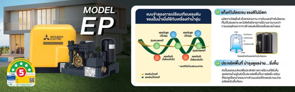 ปั๊มน้ำอัตโนมัติแรงดันคงที่ MITSUBISHI รุ่น EP-505R2 (ถังเหลี่ยม)