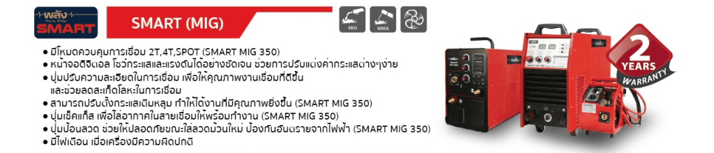 พลัง SMART MIG 350 เครื่องเชื่อมอินเวอร์เตอร์มิก/แม็ก 220V