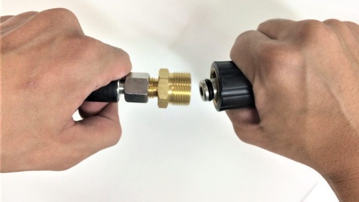 - ประกอบสายฉีดยางทั้งสองเส้น เข้ากับ ข้อต่อทองเหลือง M14*1.5/M22*1.5 แกน 14 มม. เพื่อเพิ่มความยาว