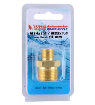 ข้อต่อทองเหลือง M14*1.5/M22*1.5 แกน 14 มม.
