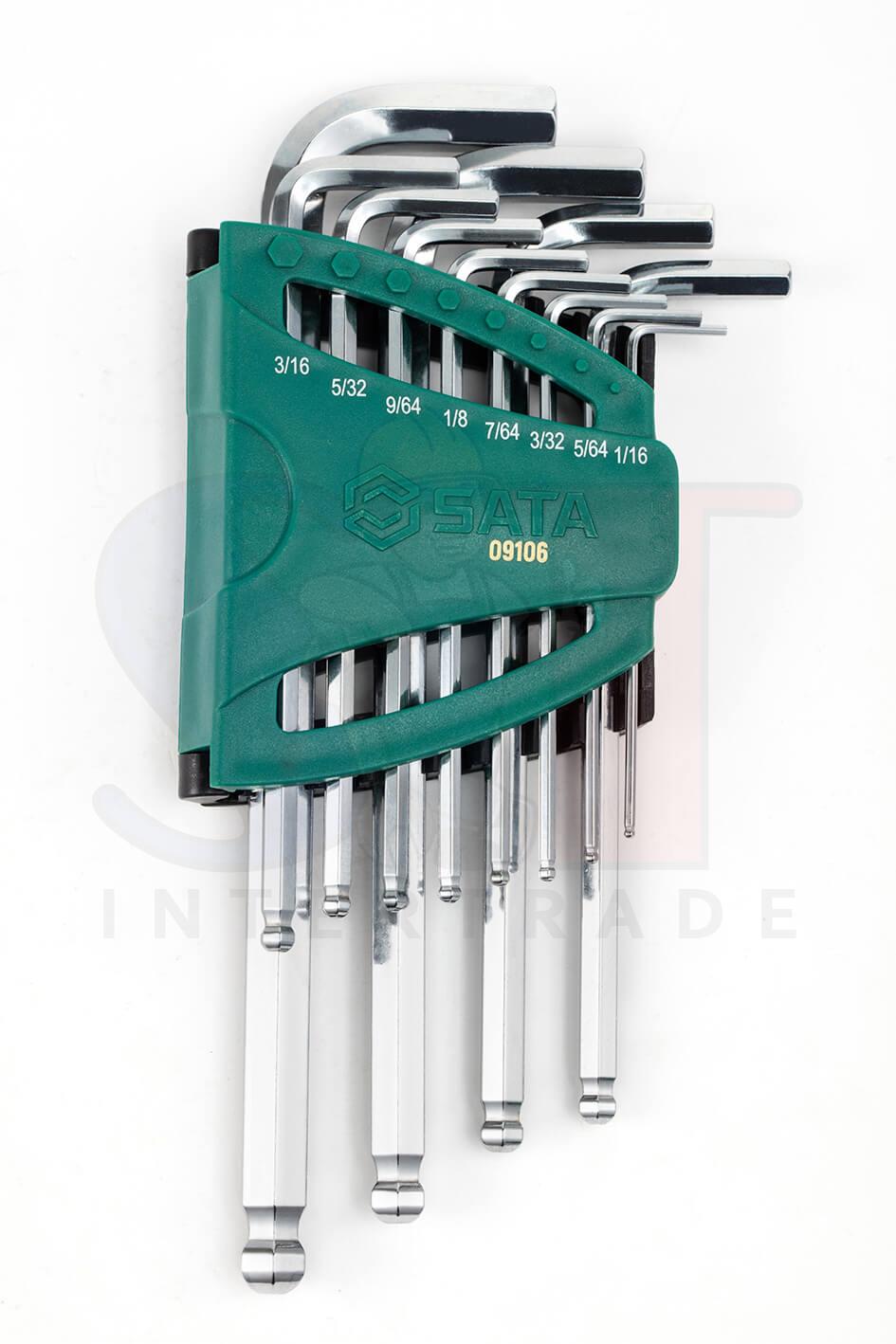 ชุดกุญประแจหกเหลี่ยมหัวบอลยาว 12 ชิ้น (นิ้ว) SATA 9106