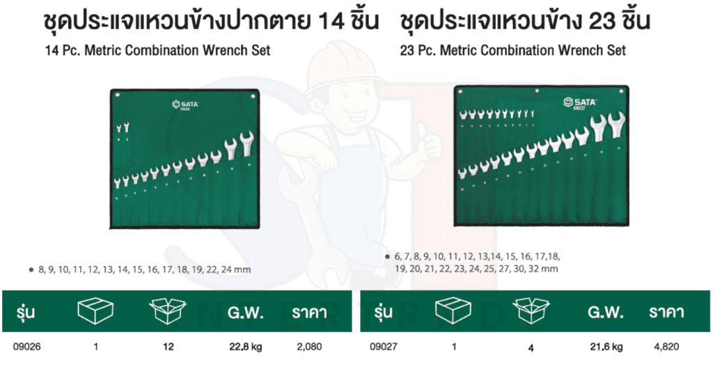 ชุดประแจแหวนข้างปากตาย 14 ชิ้น (มิล) SATA 09026