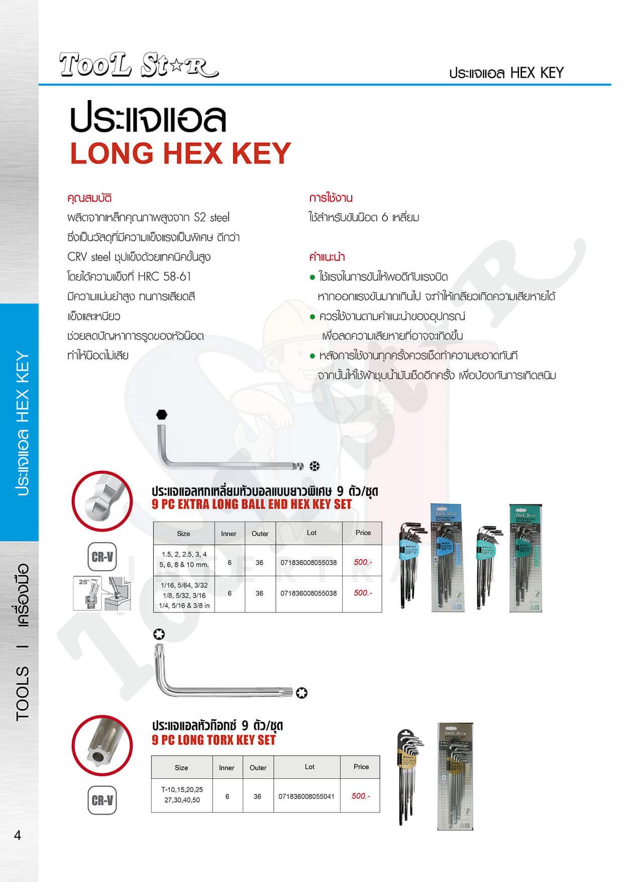 • ประแจ ใช้สำหรับขันน๊อต 6 เหลี่ยม มี Size 1, 5, 2, 2.5, 3, 4, 5, 6, 8 ,10 mm.