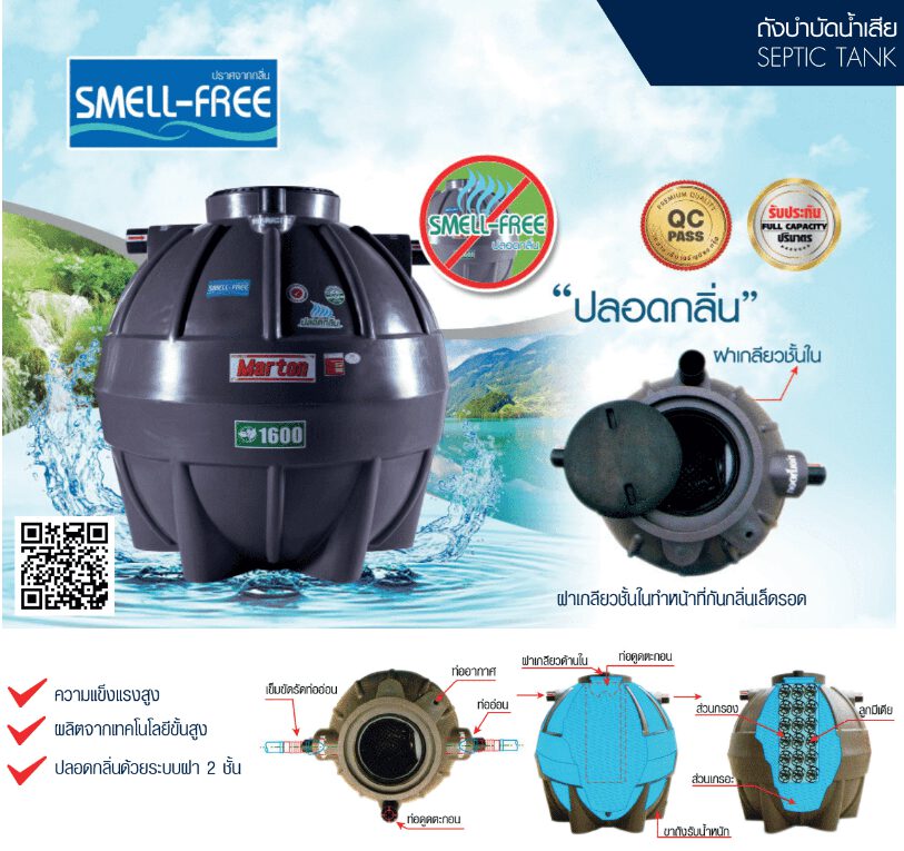 ถังบำบัดน้ำเสียปลอดกลิ่น SMELL-FREE 1000 ลิตร ใส่ใจสิ่งแวดล้อมเลือกถังบำบัดน้ำเสีย SMELL-FREE
