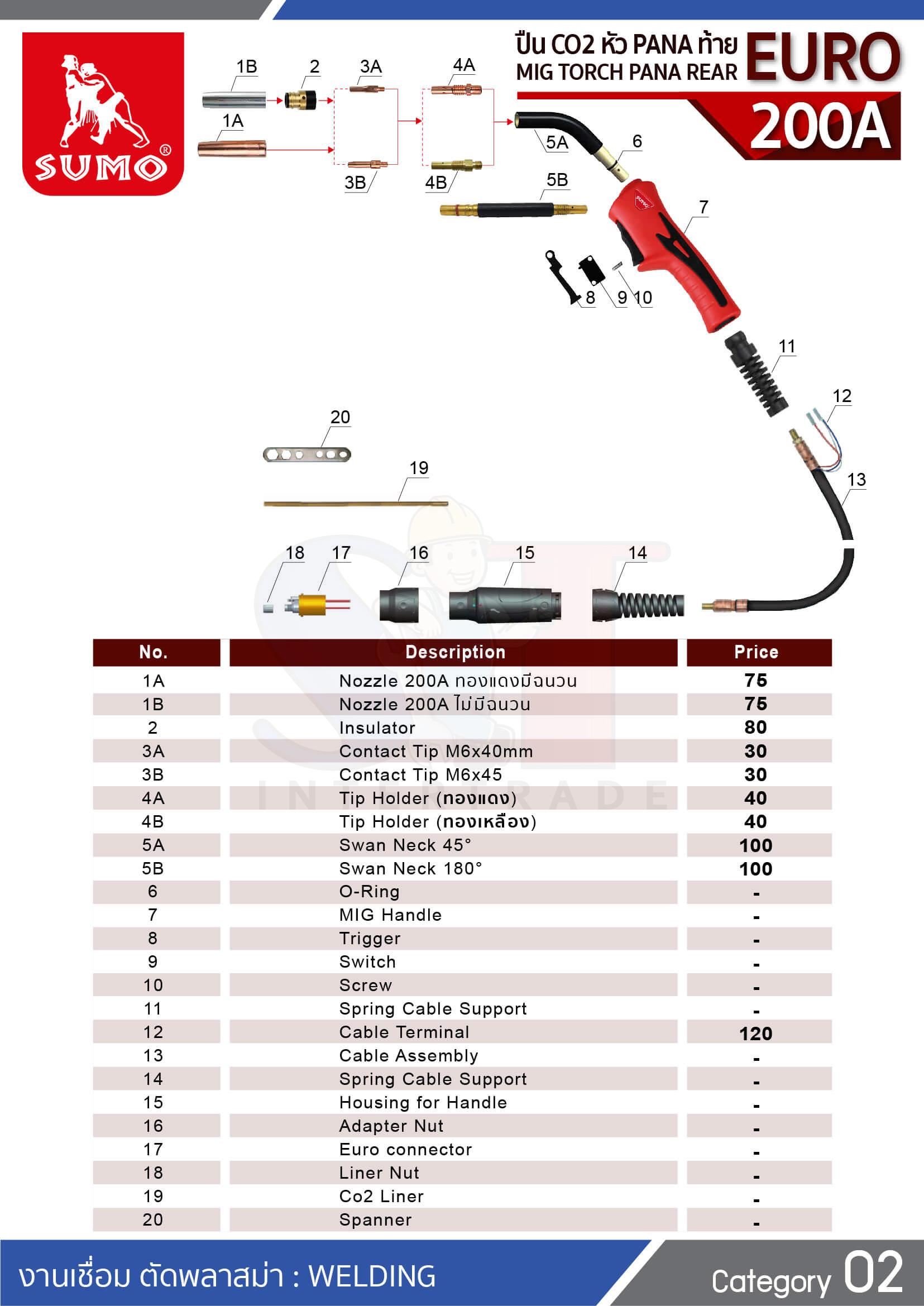- ระดับ (Rating) : 200A Co2 , 160A แก๊สผสม (Mixed Gases)