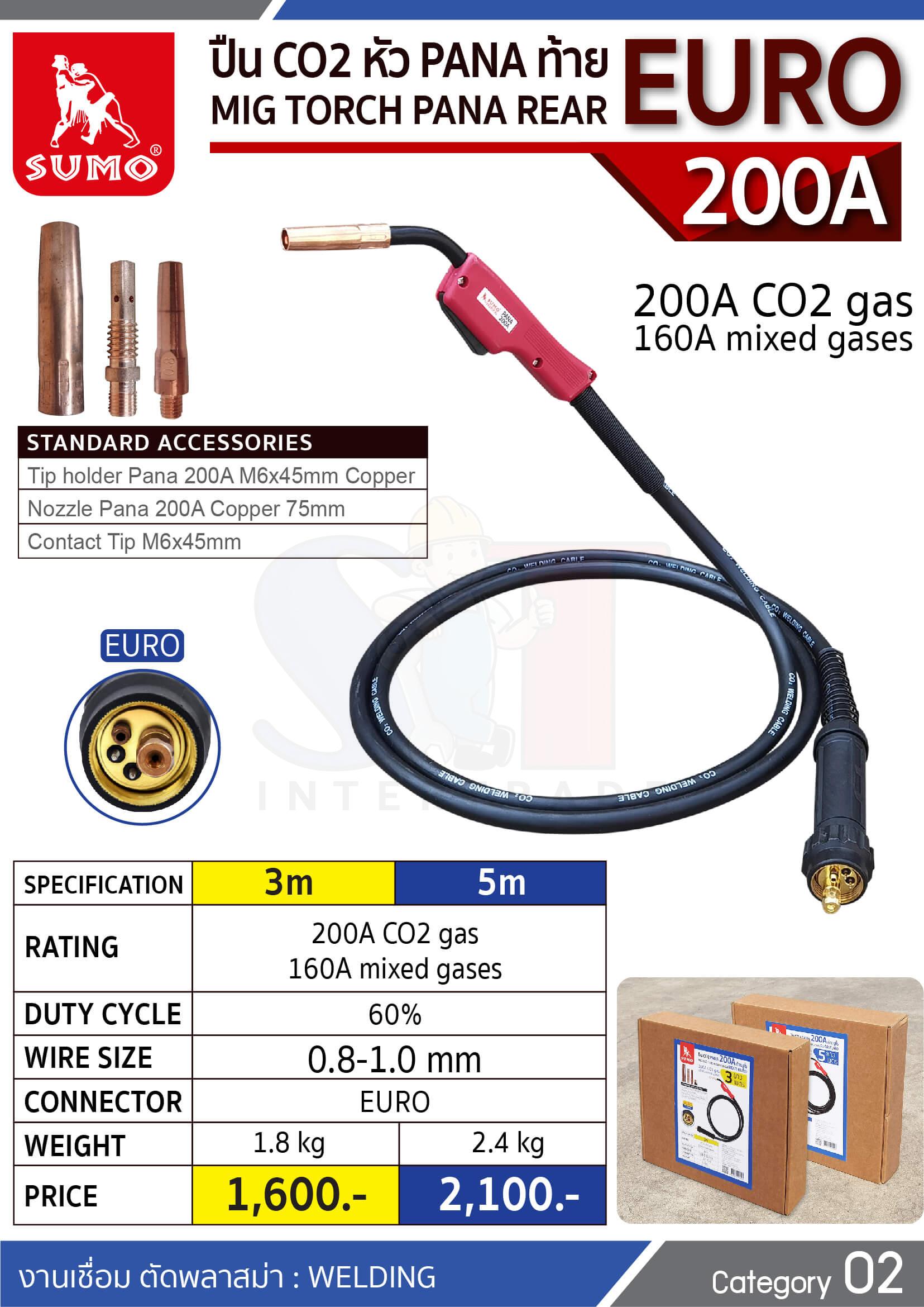 ปืนเชื่อมมิก สายเชื่อมท้ายยูโรครบชุด 200 แอมป์ เหมาะสำหรับเครื่องเชื่อม MIG CO2 200A วัสดุคุณภาพดีแข็งแรงทนทาน ทนความร้อนขณะเชื่อมได้สูง