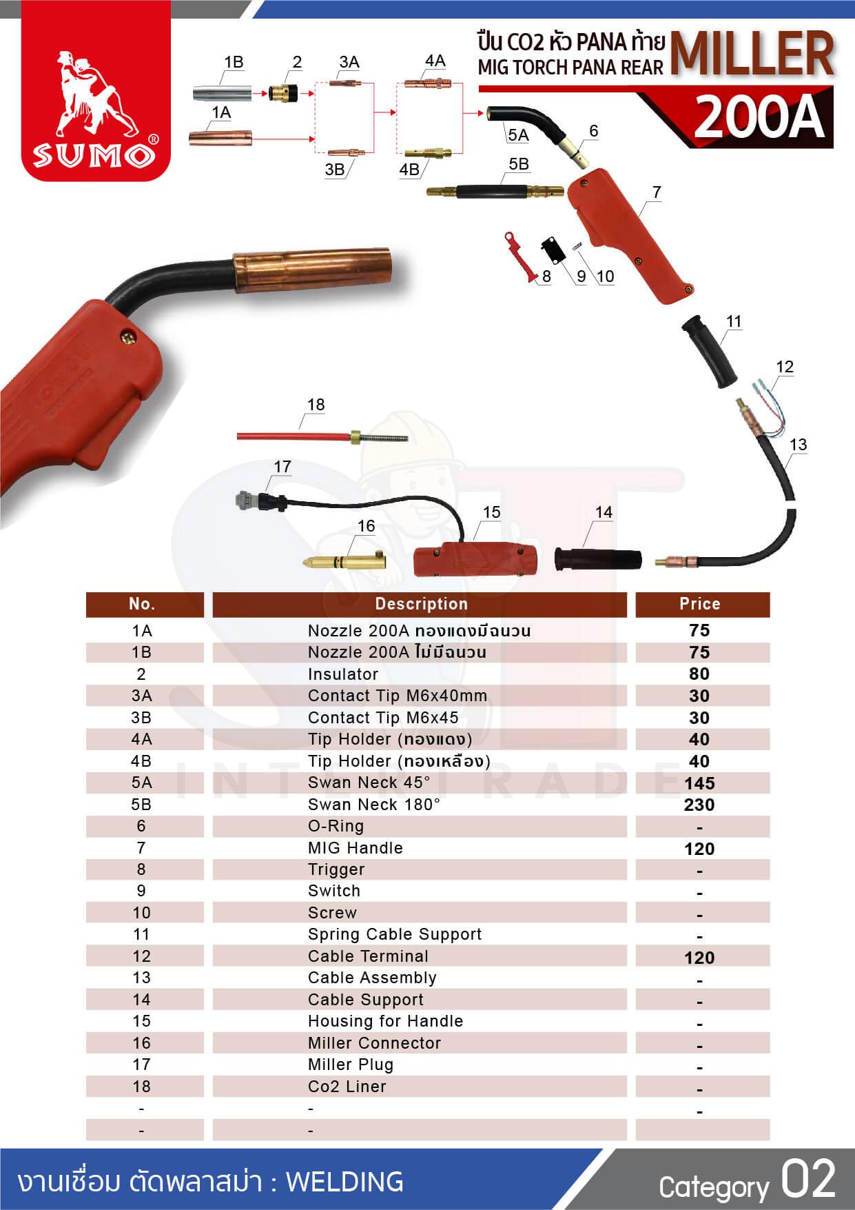 ปืน CO2 PANA 200amp (MILLER)สายเชื่อมท้ายมิลเลอร์ครบชุด 200 แอมป์ วัสดุคุณภาพดี แข็งแรงทนทาน ทนความร้อนขณะเชื่อมได้สูง
