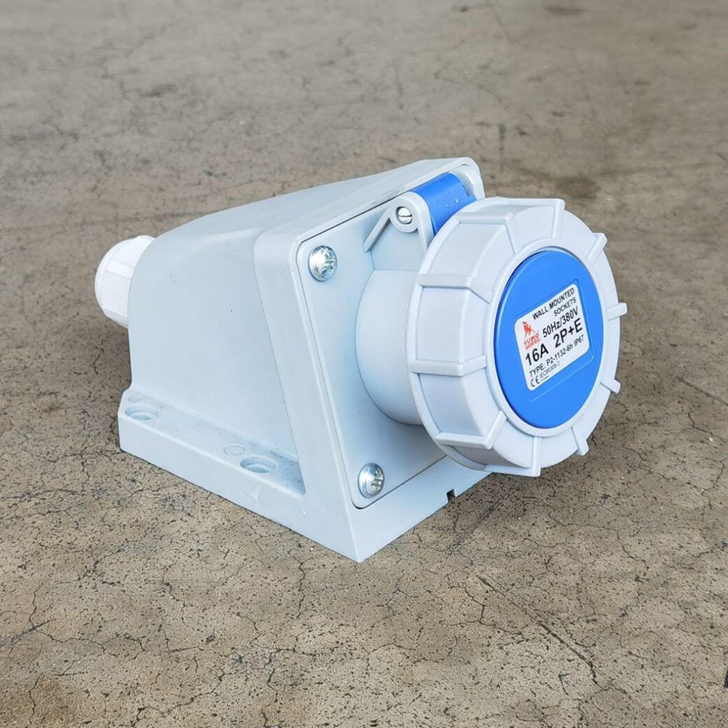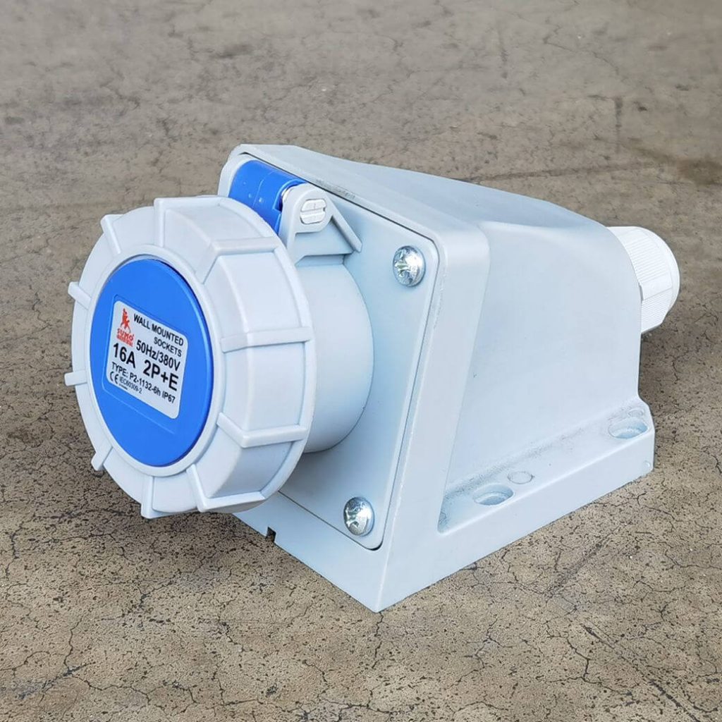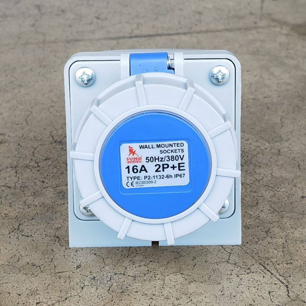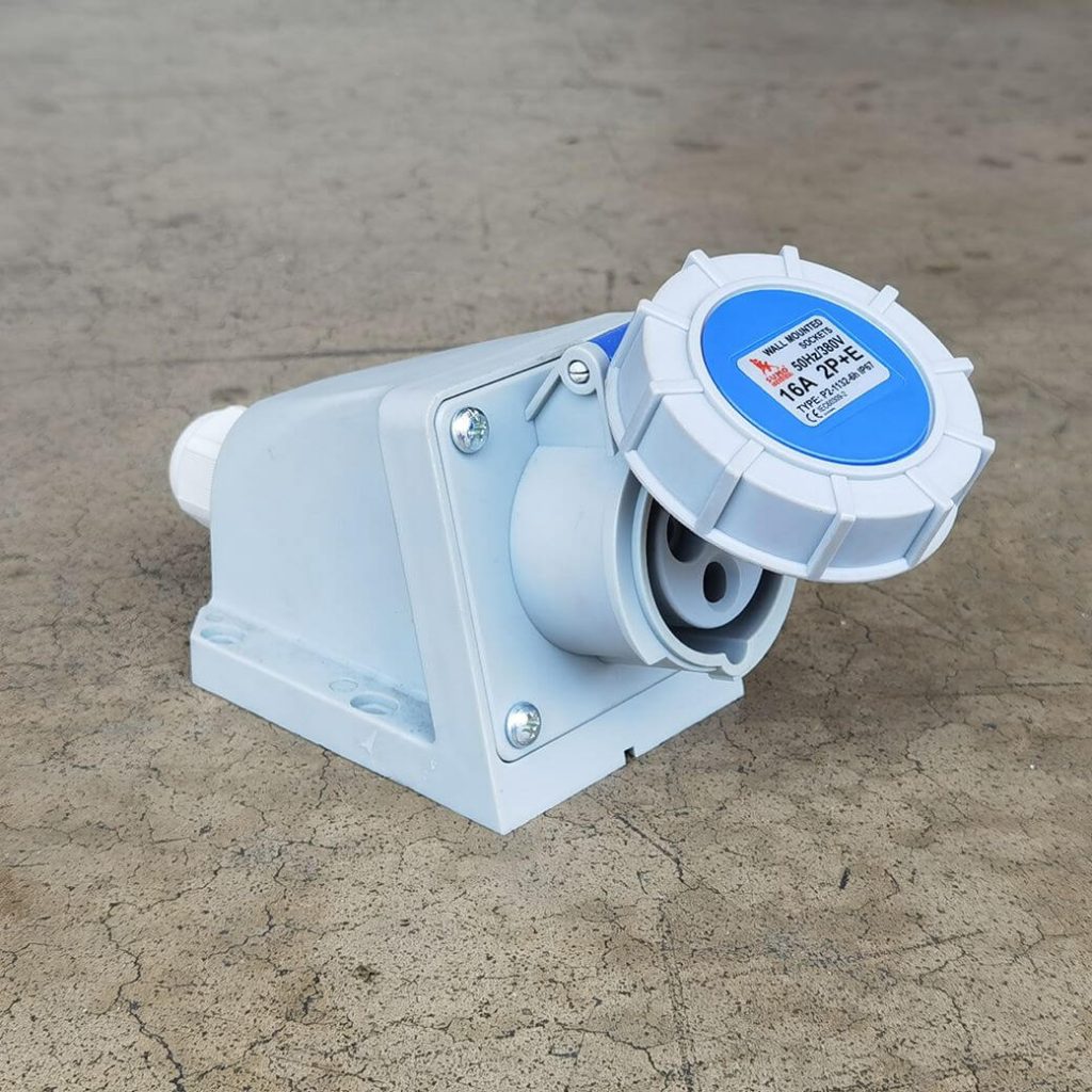 พาวเวอร์ปลั๊ก 2P+E 16A 220V Single Phase ตัวเมีย IP67 ใช้ในงานอุตสาหกรรม ทนความร้อนไม่ลามไฟ