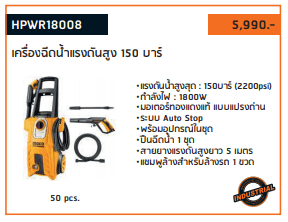 HPWR18008 เครื่องฉีดน้ำแรงดันสูง150 บาร์