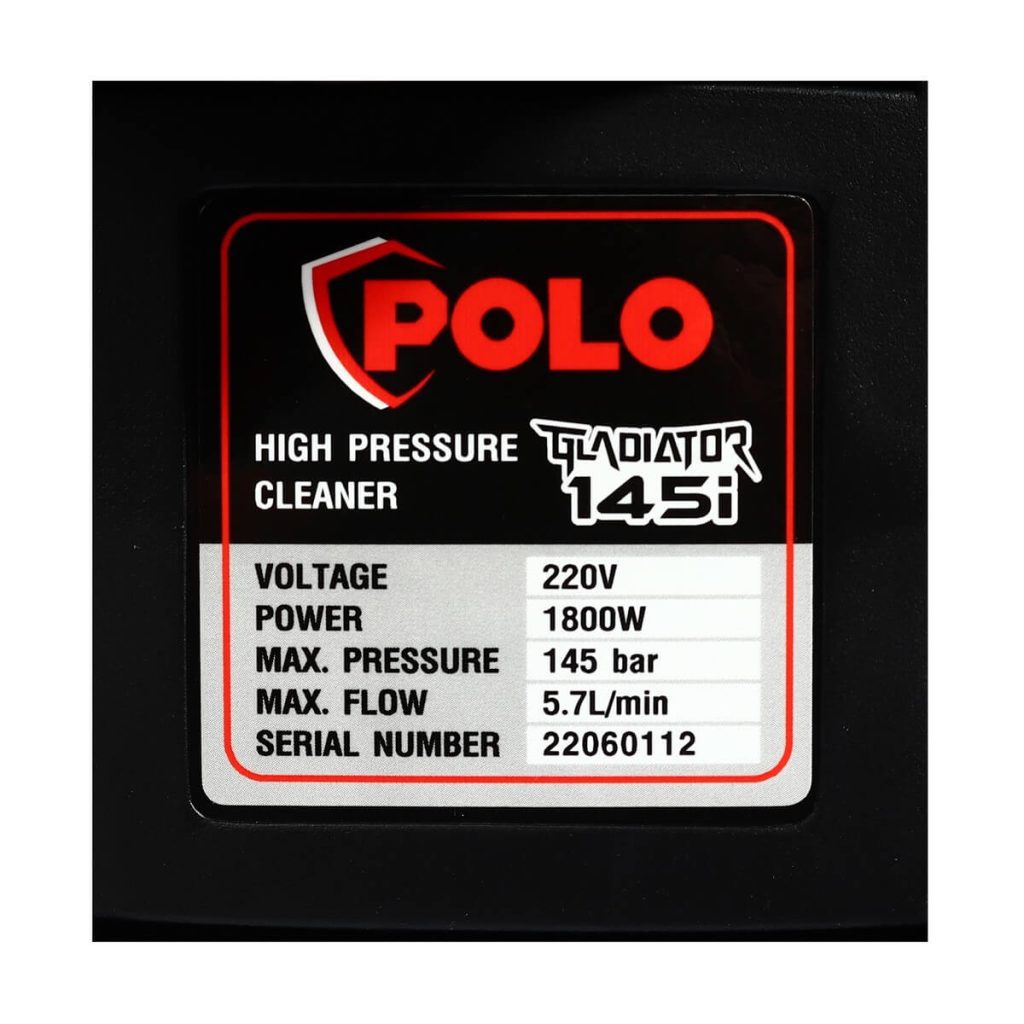POLO เครื่องฉีดน้ำแรงดันสูง 1800 วัตต์ แรงดัน 145 บาร์ รุ่น GLADIATOR145I อัตราการฉีด 342 ลิตร/ชม. สายยาว 8 ม. มอเตอร์เหนี่ยวนำ มีระบบ Auto Stop (โปโล)