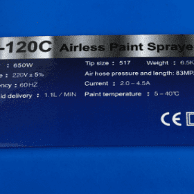เครื่องพ่นสีแบบ Airless วูฟู (WUFU) รุ่น P-120C กำลังไฟ 650 วัตต์ แรงดันไฟ 220 โวลต์ แรงดันสูงสุด 210 บาร์ ปริมาณสีสูงสุด 1100 มิลลิลิตร/นาที เหมาะสำหรับงานเฟอร์นิเจอร์ งานอุตสาหกรรม ก่อสร้าง ตกแต่งภายนอก-ภายใน พื้นโรงงานอุตสาหกรรม พื้นผิวโลหะ ผนัง