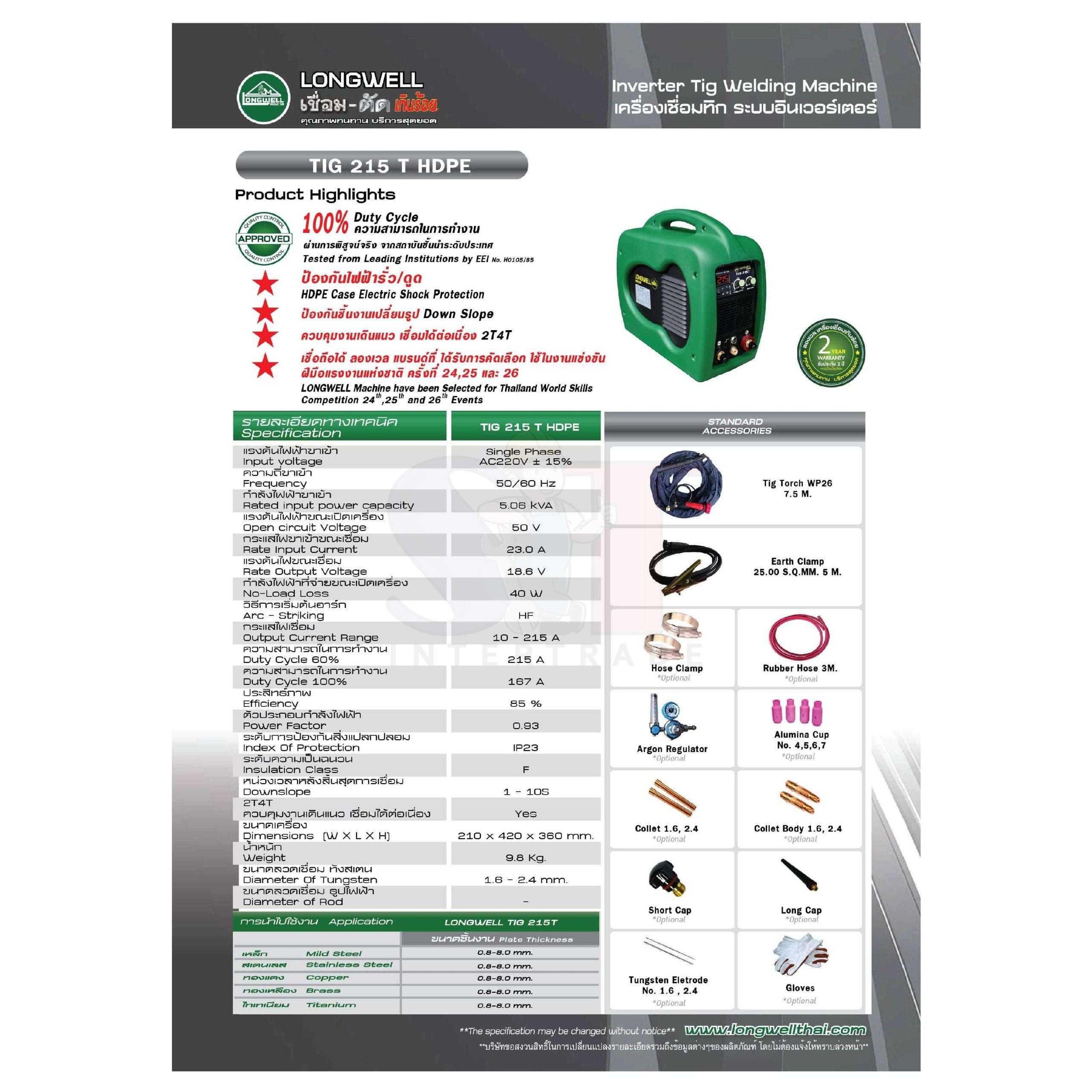 เครื่องเชื่อมทิก TIG 215 T HDPE ระบบอินเวอร์เตอร์ LONGWELL