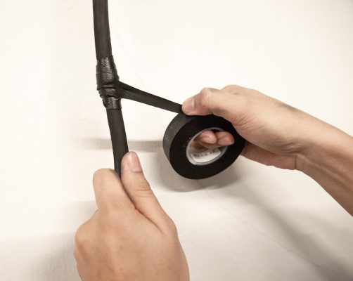 - พันทับด้วยเทปพันสายไฟอีกครั้งเพื่อลดการขูด, เสียดสี บริเวณรอยต่อของเทป