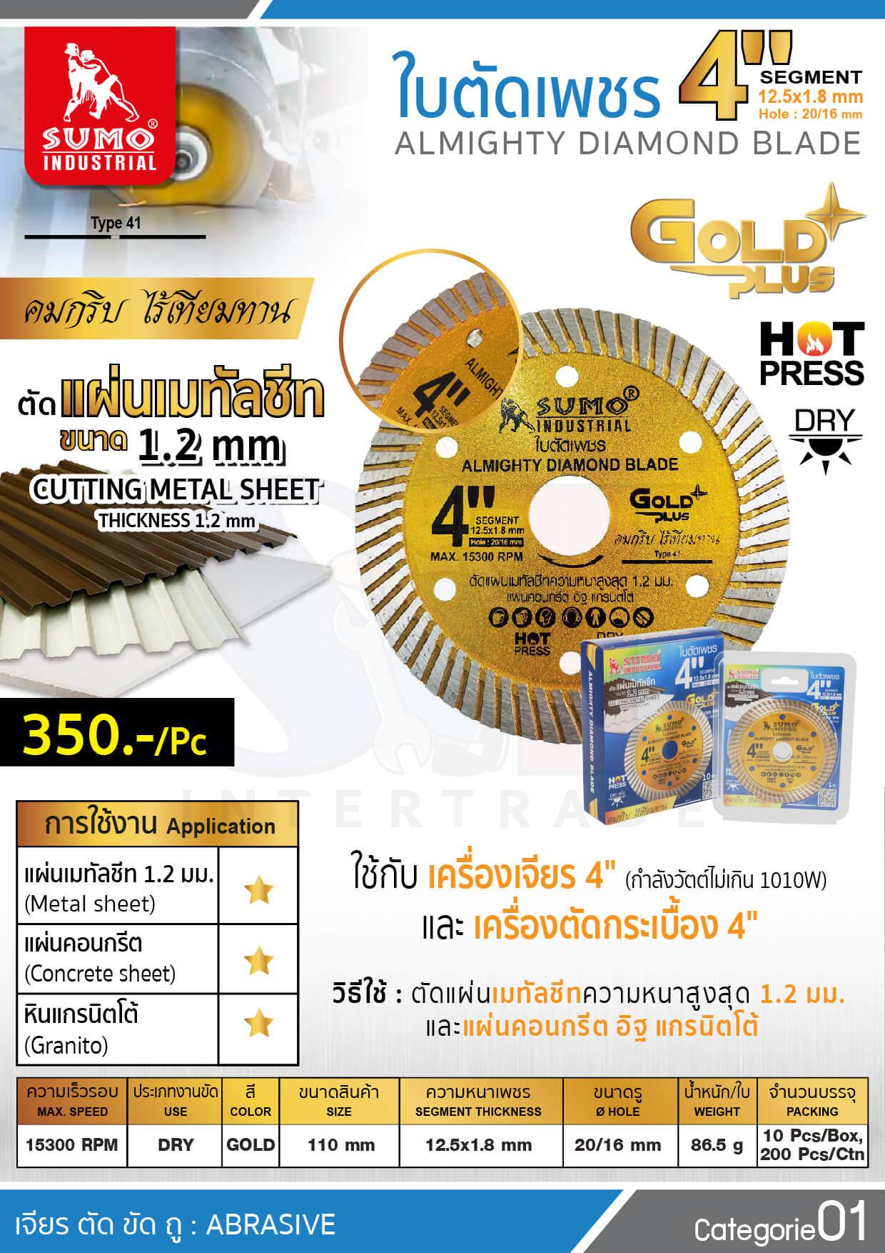 - ใบตัดเพชร 4"x1.8x12.5 SUMO Gold Puls