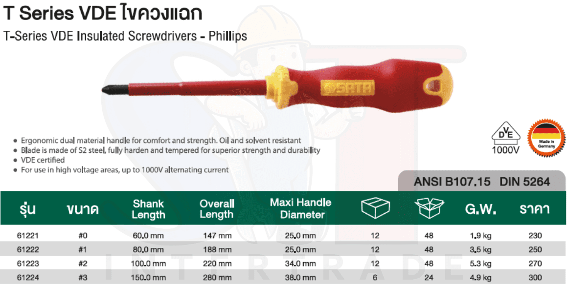 ไขควงแฉก T-SERIES SATA 61224 3x150mm VDE
