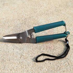 - Hold the stainless steel tin snips and squeeze the handle to unlock.