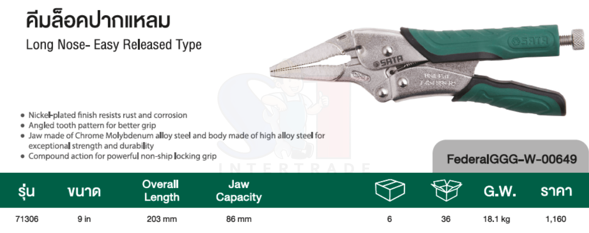 คีมล๊อคปากแหลม 9″ SATA 71306