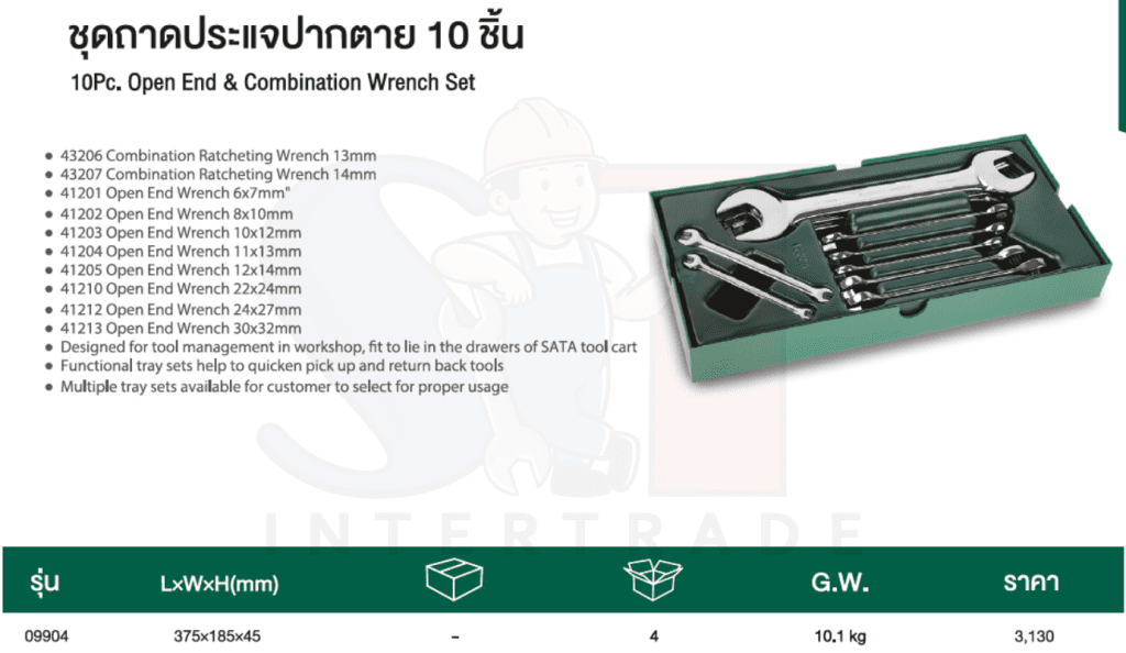 ชุดถาดประแจปากตาย 10 ชิ้น SATA 09904