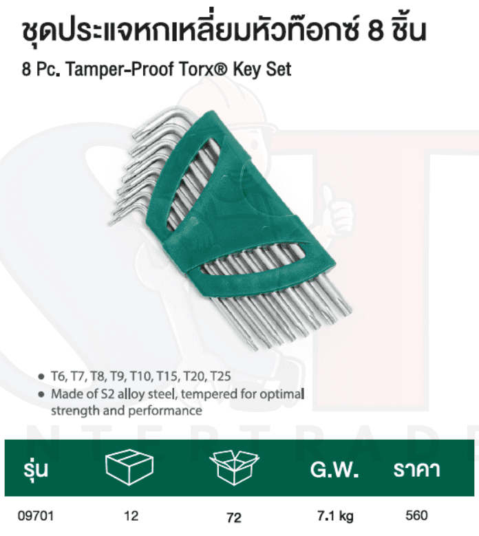 ชุดประแจหกเหลี่ยมหัวทอร์ค 8 ชิ้น SATA 09701