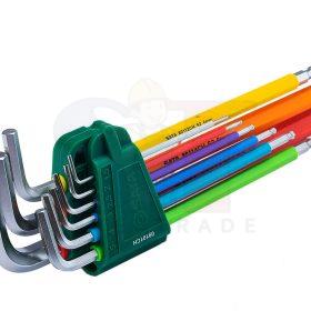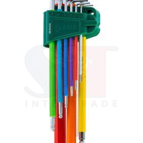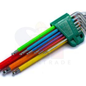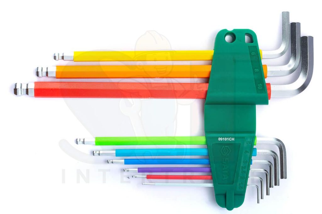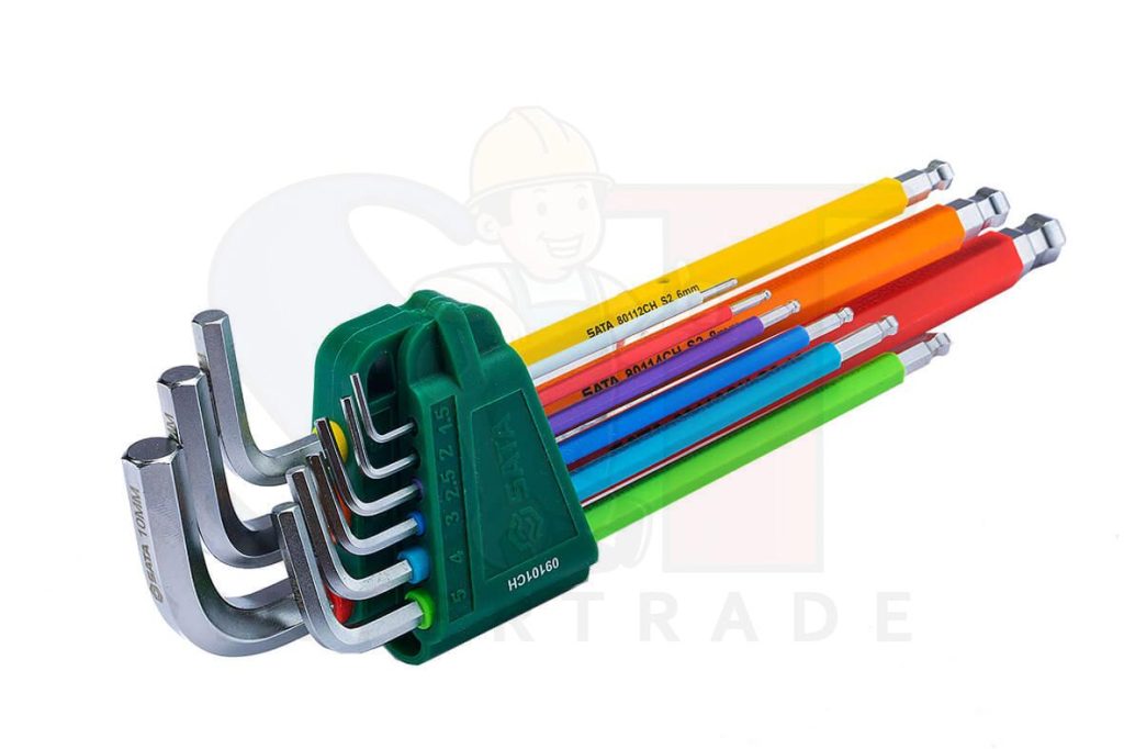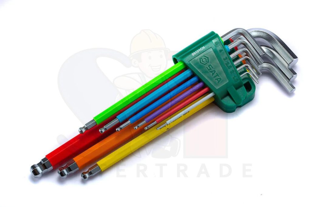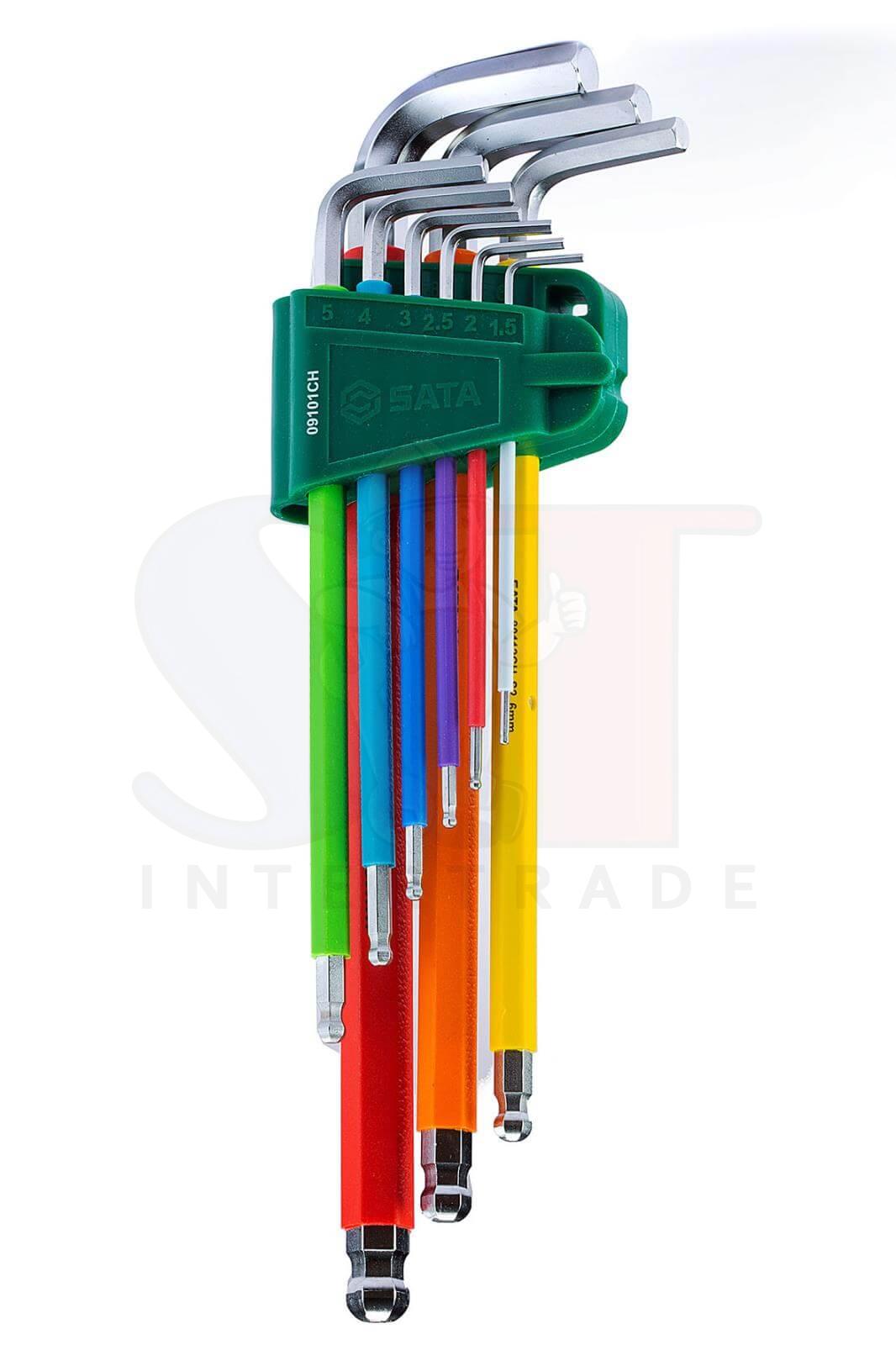ชุดประแจหกเหลี่ยมหัวบอลยาวพิเศษ แทบสีกันลื่น 9 ชิ้น SATA 09101CH