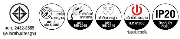 - ใช้ในที่ร่มและแห้ง ห้ามใช้ในที่ชื้น หรือมีน้ำขัง