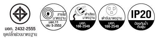 - ใช้ในที่ร่มและแห้ง ห้ามใช้ในที่ชื้น หรือมีน้ำขัง