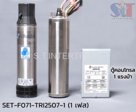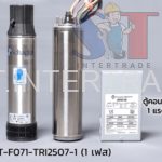 ชุดปั๊มน้ำบาดาล (ปั๊มซับเมอร์ส) Franklin รุ่น TRI-SEAL ขนาด 4 นิ้ว กำลัง 1 แรงม้า 1 เฟส 7 ใบพัด Head ส่งสุง 40 เมตร อัตราการสูบน้ำ 70 ลิตร/นาที ขนาดท่อส่ง 1-1/4 นิ้ว ชนิดท่อส่ง เทอร์โมพลาสติก (ประกอบด้วย ปั๊ม, มอเตอร์ และ ตู้คอนโทรล)