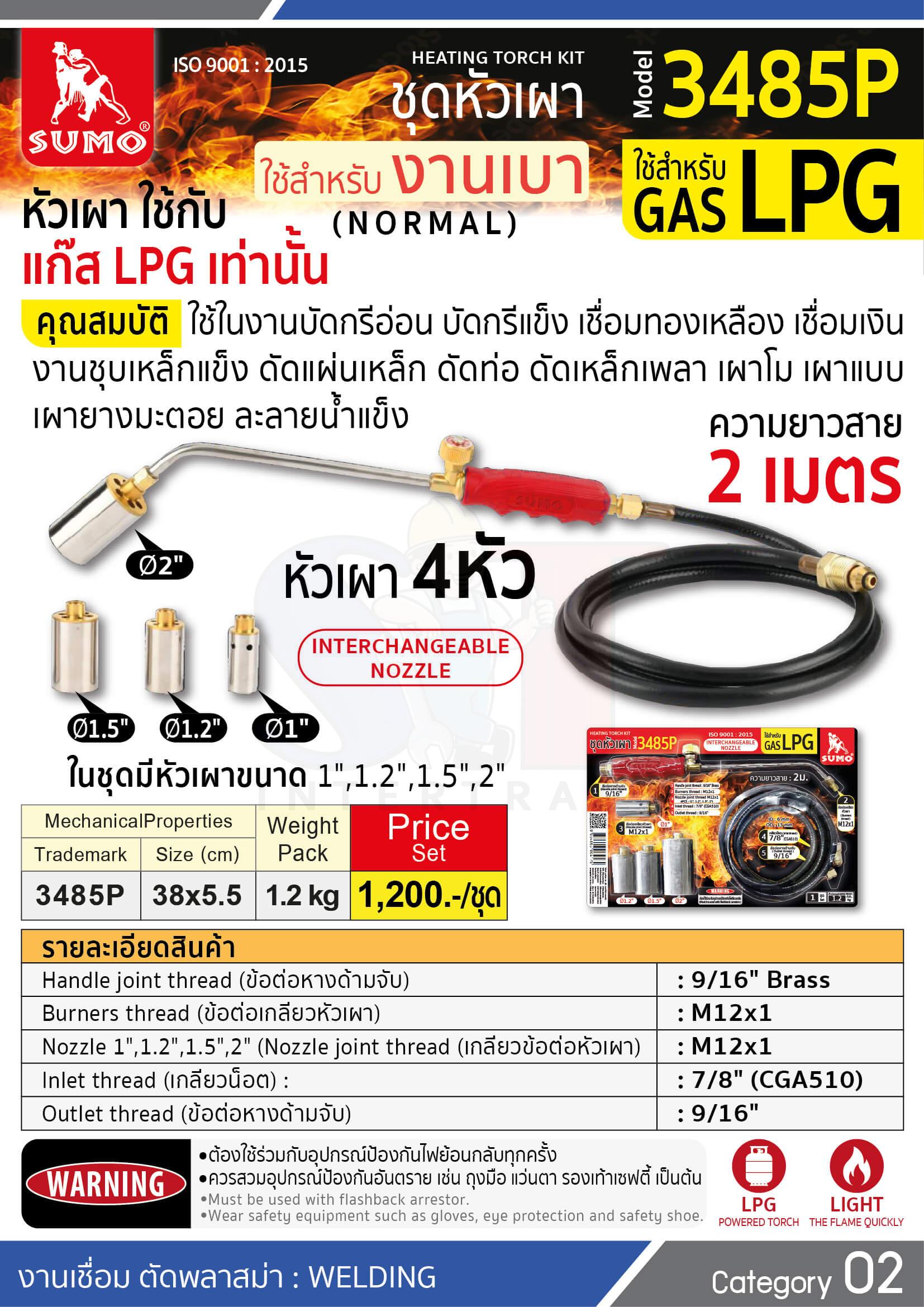 ชุดหัวเผา รุ่น 3485P SUMO ใช้ในงานบัดกรีอ่อน บัดกรีแข็ง เชื่อมทองเหลือง เชื่อมเงิน งานชุบเหล็กแข็ง ดัดแผ่นเหล็ก