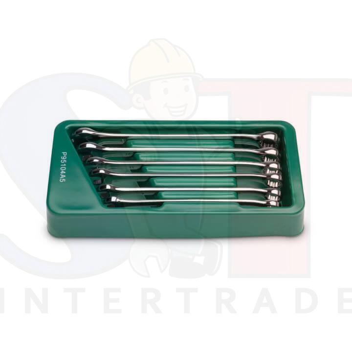 - Combination wrenches feature a 15° offset box end for added knuckle clearance