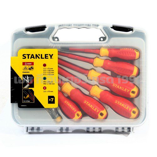 STANLEY ชุดไขควงหุ้มฉนวน 6 ชิ้น และ ไขควงวัดไฟ รุ่น 60-175 ได้รับการทดสอบกระแสไฟ 1,000 โวลต์ ก้านทำจากเหล็กโครมวานาเดียม มาตรฐาน EN60900 (สแตนเล่ย์)
