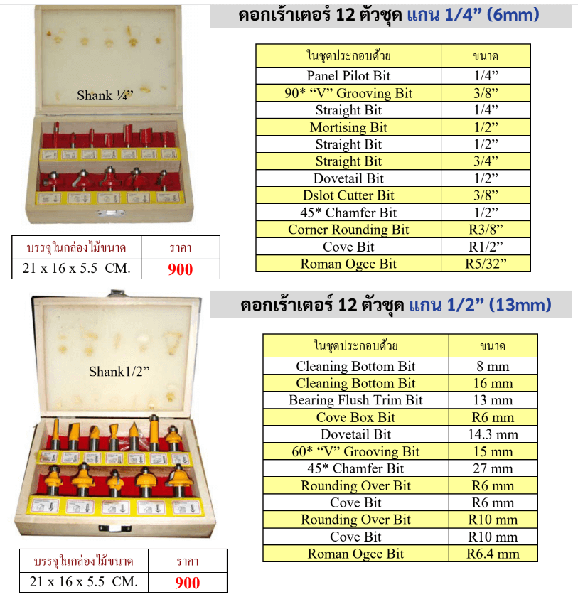 ดอกเร้าเตอร์ 12 ตัวชุด แกน 1/4″