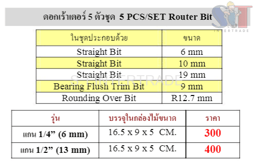 ดอกเร้าเตอร์ 5 ตัวชุด แกน 1/4″