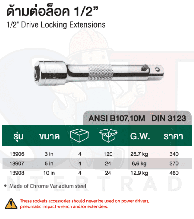 ด้ามต่อล็อค 3″ SATA 1/2″ DR. 13906