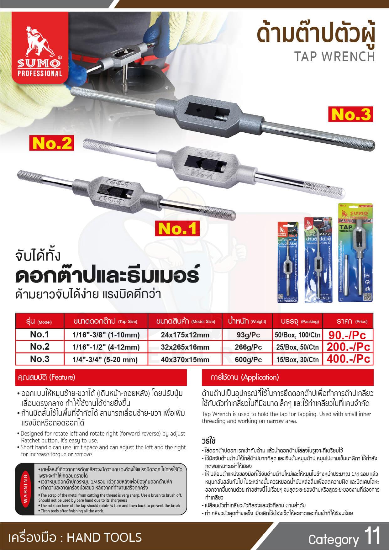 - ใช้กับดอกต๊าป 1/4"-3/4" (5-20mm)
